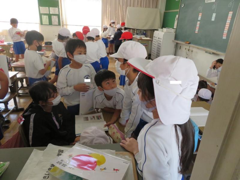 まとめた紙を指しながら説明したり,クイズを交えたりと,学んだことを2年生の子にわかりやすく説明することができました。