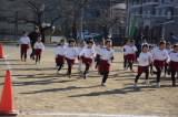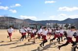 寒波襲来の中、多米小学校の校庭では持久走大会が行われました。