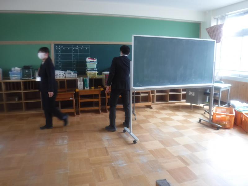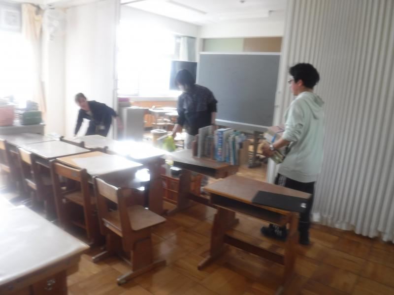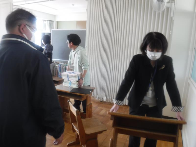 みんなの力で行えば、たくさんの作業もあっという間です。たくさんの物を運び、大きな棚を動かしました。4月には気持ちよく授業ができるように、しっかり準備していきます。