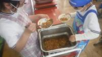 給食メニューはマーボ―豆腐。準備も片づけも上手にでき、おかわりする子もいました。