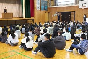 今日は全校児童が体育館に集い、3学期の始業式が行われました。