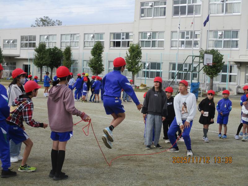 11月12日(水)縦割り活動 投稿日時 : 11/12 主担 長縄の練習を始めました。縄が回る前で立ちどまる子もいましたが、上級生が跳ぶタイミングを教えたり、一緒に数を数えたりしていました。 Tweet {{options.likeCount}} {{options.likeCount}} 0 コメント