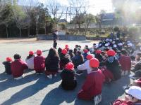 子どもたちには、始業式の日に「明日から1月14日までのどこかで避難訓練があります」とだけ予告しておきました。1月9日(金)20分休みの時間に火災報知器が鳴り響きました。放送内容の「職員室から出火しました」「運動場に避難しなさい」の情報を正しく聞き取り、各自がハンカチで口や鼻を押さえて、しゃべらずに集合できていて立派でした。また、訓練後には6年生が玄関に置いた靴ふき用の雑巾を進んで片付ける姿がありました。山梨県では、大規模な山火事が発生して、今なお避難している人が大勢いるようです。いつどこで起きるかわからない自然災害に備え、訓練を日頃の生活に生かせるようにしてほしいです。