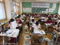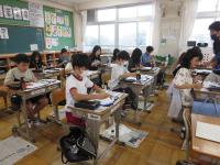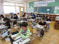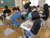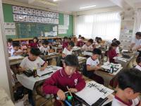10月16日(木)3年生~6年生の子どもたちが校内競書大会を行いました。3年生の子たちは、毛筆による初めての競書会だったせいか、どの子も緊張した表情でしたね。4年生以上の子たちは、今までの経験を生かして、集中して丁寧に書けていました。6年生の子たちは、小学校最後の競書大会なので、満足のいく作品となるよう気合が入っていた気がしました。結果が楽しみですね。