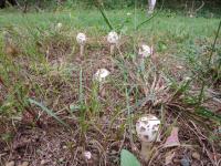 今週に入って、朝の冷え込みが一気に進んできた感じです。子どもたちの登校時の服装を見ても、上着を着てくる子が目立つようになりました。周りの木々を見ると、キンモクセイの甘い香りがしたり、モミジの葉やクロガネモチの実が色づき始めたりしていました。百花園をのぞいてみたら、熟したカキやザクロの実やかわいいキノコの群生も見られましたよ。