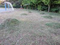 10月25日(土)午前中に、PTA役員や委員の10名程度のみなさんが協力して草刈り作業を行ってくれました。男性は、草刈り機で運動場の東側を中心に草を刈り、刈り取った草の山がたくさんできました。女性とお子さんたちは、体育館周り(西側・南側)の防草シートの隙間に生えた雑草を中心にきれいに刈り取ってくれました。おかげで見違えるようにきれいになりました。