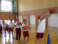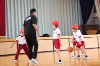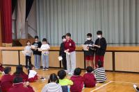 10月28日(火)5時間目に、プロバスケットボール「三遠ネオフェニックス」の元プロ選手による出前講座を実施しました。4年生と5年生が一緒に体験をして、ドリブルやフリースローの練習をしたり、元プロ選手とミニゲームを行ったりして、楽しい時間を過ごすことができました。ゴールが決まった時は、満面の笑みになっていましたよ!