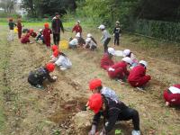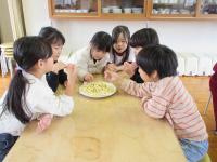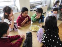 1~3年生が10月31日(金)に「おいもパーティー」を行いました。2年生が司会と進行をしてくれて、たて割り班に分かれて、クイズや焼き芋じゃんけん、絵本の読み聞かせなど楽しい時間を一緒に過ごしました。焼き芋じゃんけんは、大盛り上がりでした。蒸し器で蒸したほくほくのお芋を食べた時は、どのグループからも「お芋おいしい~」「またやりたい!」という、うれしい感想が聞こえてきました。