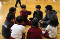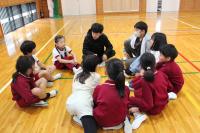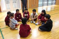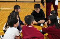 11月6日(木)、運営委員7名が中心となってルール説明を上手に終えた後、12グループのたて割り班に分かれて「マッサマンゲーム(前の子の言葉を覚えながらつないでいく遊び)」を行いました。高学年になると、より難しいワードを出してグループで盛り上がっていましたよ。