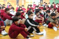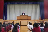 12月2日(火)体育館で全校朝会を実施しました。前半は、東三河間税会より豊南小学校に「学校賞」(「税の標語」で積極的に参加したことが認められたため)を授与されたので、子どもたちに賞状の披露を行いました。後半は、校長先生から人権についてのお話がありました。(毎年12/4~12/10は「人権」について考える人権週間)どの子にも「幸せに生きる権利」「守られる権利」「自由に参加する権利」などがあります。自分とまわりの人との個性や違いを大切にすることが大切ですという内容のお話でした。