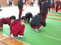 1月19日(月)の掃除の時間に、高学年と職員で体育館の会場準備を行いました。子どもたちが進んでカーペットを敷いてくれたり、長机を運んでくれたりとわずか15分間足らずでほぼ完成しました。これで体育館での練習も計画通りに行えそうです。1月31日(土)の本番が待ち遠しくなりました。