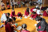 学校保健委員会を、11月17日(月)の授業参観後に実施しました。今回は、「げんきもりもりな豊南っ子を目ざして~ポジティブ思考への変換~」をテーマに、物事のよい面に目を向け、前向きな考え方を身につけるリフレーミング活動をたてわり班に分かれて行いました。本校の谷口スクールカウンセラーさんを講師に迎え「こころのメガネをかけかえる魔法」について話していただきました。20名近くの保護者の方々にも参加していただき、ポジティブ思考の大切さを実感していただきました。