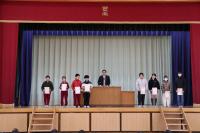 1月13日(火)朝の時間に、児童会任命式を行いました。任命式の前に、夏休みの赤い羽根ポスターの入賞者2名に賞状を手渡しました。その後、3年生から6年生の学級代表8名に任命証を手渡しました。学校や学年の機関車として、クラスの仲間を力強く引っ張って、温かな学級をつくる中心となって働いてほしいと思います。