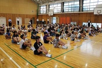 その後、校長先生から危険な暑さのため全校出校日をなくしたことと、もうすぐ始まるパリオリンピックに出場する豊橋市出身の髙田真希選手についてお話を聞きました。最後に全員で校歌を歌い、終業式が終わりました。