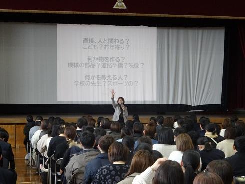 また、一般社団法人パーソナルラボより金田文子様をお招きし、将来の職業選択に向けて、自己の適性や働くことの意義についてのお話をしていただきました。