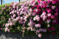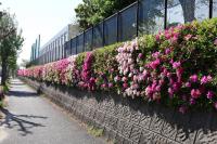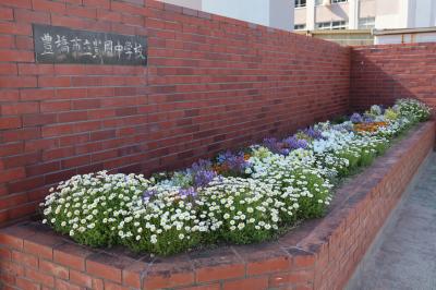 今、豊岡中学校の南側壁面が赤、白、ピンクなどとてもきれいに彩られています。今年は少し時期が早いようですが、ツツジの花が満開です。機会があれば、ぜひ見に来てください。