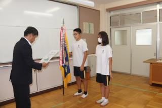 夏休みの間にあった大会やコンクールの表彰をしました。