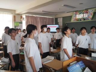 さらに、2・3年生による校歌合唱では、美しいハーモニーで1年生を魅了しました(豊岡中の校歌は二部合唱です)。コロナ禍を乗り越え、校歌も年々、声量が戻ってきています。