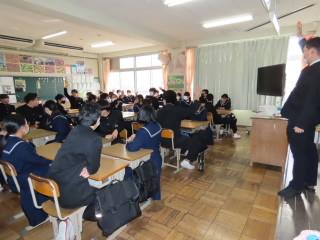 生活担当の先生が、努力の積み重ねの大切さと各学年で3学期にがんばってほしいことを伝えました。