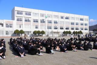 さらに、2・3年生による校歌合唱では、美しいハーモニーで1年生を魅了しました(豊岡中の校歌は二部合唱です)。コロナ禍を乗り越え、校歌も年々、声量が戻ってきています。