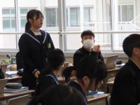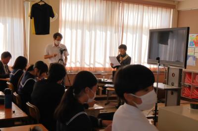 11月28日(金)、プロF(生徒集会)を行いました。今回は級長会と国際委員会の発表です。