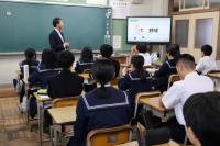 そして、とりわけ賞賛をいただいたのは、豊岡中生の姿です。ICTを活用して熱心に自分の問いを追究する姿、グループワークや話し合いで学びを深める姿など、授業への真剣な姿勢から今の落ち着いた学校の雰囲気が伝わってきました。