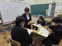 11月5日(水)、年に一度の学校訪問がありました。豊橋市教育委員会の先生がたに豊岡中学校の様子を見ていただく日です。ゲームを使った確率の授業、天気図を並べ替え、気象への理解を深める授業など、どの授業も先生がたの工夫が感じられるものばかりでした。