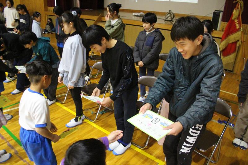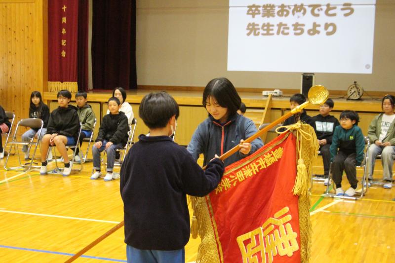 6年生からは、なわとびのジャンプ台とぞうきんのプレゼントがありました。6年生からの心のこもったプレゼントを受け取った下級生はとてもうれしそうでした。