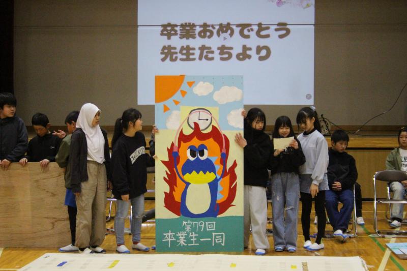 3月3日(火)の5時間目に6年生を送る会を行いました。1~4年生、職員がそれぞれ出しものをして、1年間最高学年として下級生を引っ張ってくれた6年生へ精一杯の感謝の気もちを伝えました。