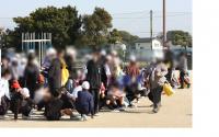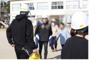 子どもたちが運動場に集合し、教員が人数確認をした後に、捜索班の教員が行方不明者を捜索に行きました。