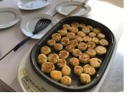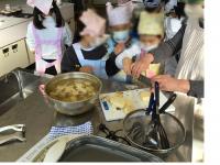 授業ボランティア8名のかたに手伝っていただき、’’いももち’’を作りました。