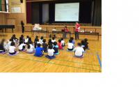 朝会では、スポーツ、勉強、習い事など、自分の目標をもって取り組めるとよいという話をしました。