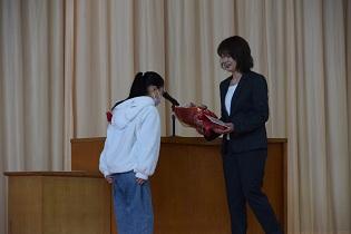 5/22(木)の集会で、JRC登録式を行いました。今回は、今年度初めて、校長室からの中継を試みてみました。この先、暑くて体育館が使えないなどで、みんなで集まれないときの予行演習という意味合いもありました。初めてということもあり、中継自体はスムーズにいかない部分もありましたが、1年生にもバッジが手渡されました。JRC加盟校の一員として、全校のだれもが、気づき・考え・実行する、の精神を学校生活や家庭で発揮してほしいと思います。