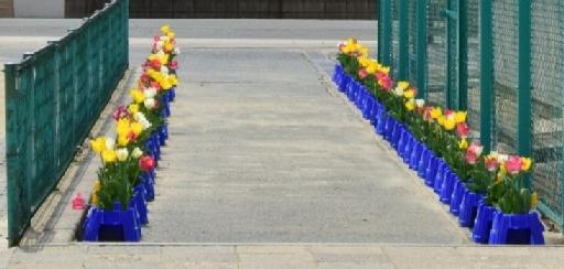 きれいに並んでいるチューリップは、2年生のお兄さん、お姉さんが育ててくれました。