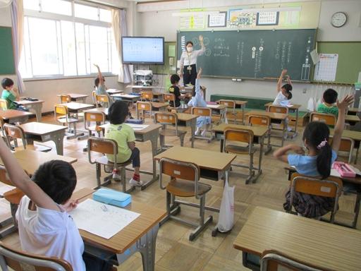 【1年生の教室】 みんなよい姿勢で待っているね。