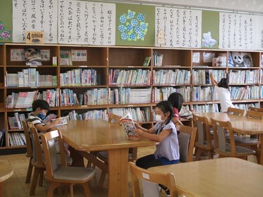 【図書室でも対面にならないように考えてすわります】