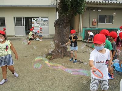 大きなシャボン玉が、校舎の3階までとんで大喜び!