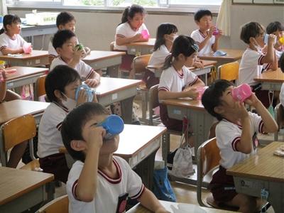 虫歯予防のため、毎週1回、1年生はフッ素洗口をしています。