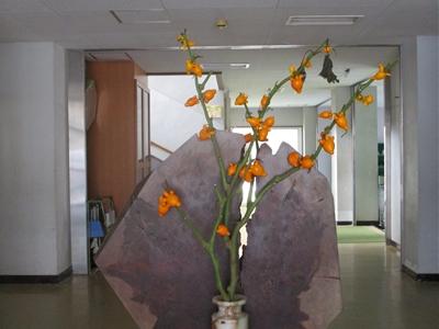 キツネの顔のような形をした面白い形の実・・・フォックスフェイス。北町の渡辺さんが畑で栽培をしたものをくださいました。南校舎玄関に飾ってあります。