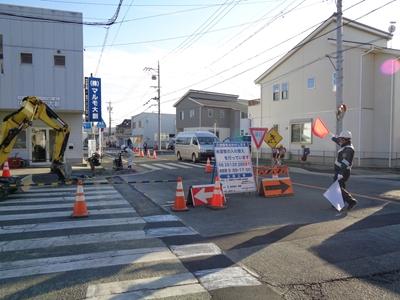 水道管の入れ替え工事のため、12月26日まで学校の南、牛川交番交差点までの歩道が通れない時間帯があります。車道も片側通行で渋滞になることもあるようです。安全に登下校できるように子どもたちへの指導、教員の引率等行っていきますが、校区の皆様も子どもたちの安全を見守っていただけると幸いです。