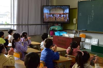 12月11日(金)、テレビ放送で駅伝部選手激励会を行いました。ビデオで撮った応援団の映像に合わせて、各教室の児童が手拍子などで応援しました。