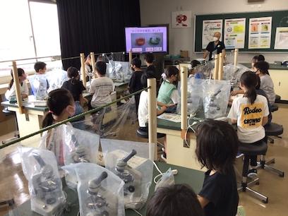 視聴覚センターでは,顕微鏡を使った実験や,星についてプラネタリウムを見学しました。
