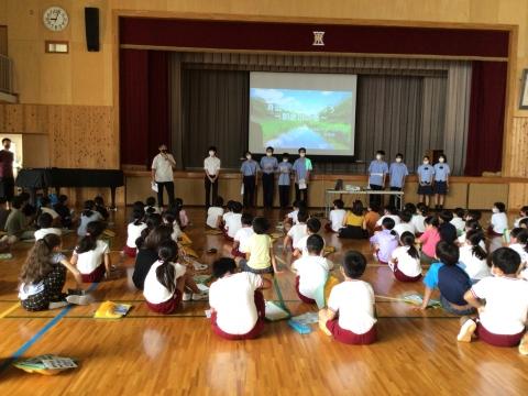 うしかわ学習で進めている朝倉川の学習で、長年にわたって朝倉川の環境整備や調査を行ってきている桜丘高校の生物部のみなさんから、朝倉川の生物についてお話を聞きました。