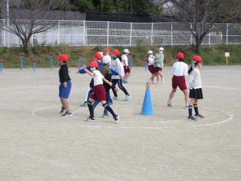 4年生では,学年で企画した「海賊鬼ごっこ(スポーツおにごっこ)」をして企画することの難しさや,改善してよりよいものを作り出していく達成感や喜びを学びました。
