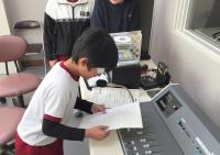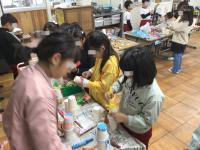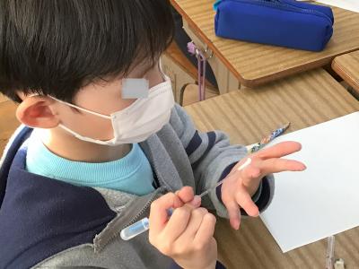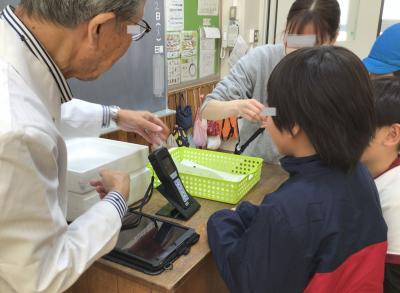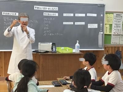 毎年、学校薬剤師さんのご厚意で、3年生が手洗い指導を受けています。感染症予防のためにも、汚れをきちんと落とせているか、どのように洗うのがよいかを学ぶのはとても大切なことですね。検査薬等のご準備もしていただき、目に見えるかたちで確かめることができました。