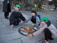 さあ、バスで京都・嵐山に向かいます。ホテルに荷物を置いて、渡月橋へ。ポ〇モンのレアなマンホールを見に行ったり、河原を散策してハートの石を見つけたり…。夕焼け空に月がうっすら見え、とても美しい景色でした。京都出身の教員の話だと、渡月橋は一度も振り返らずに渡りきると幸せになれる、と言われているとか。それを聞いて、帰り道は、振り返るのを我慢して渡った子たちが多数…。きっと幸せが訪れますよね。