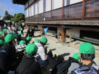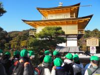 朝は、京都らしい和定食。湯豆腐で温まりました。おかわりのための炊飯器の前には、何人もの子が…。朝から食欲旺盛でした! ホテルの皆さんにお礼を言って出発。まずは、金閣寺や二条城を巡りました。うぐいす張りの仕組みを体をかがめて教えてくださるガイドさん、ありがとうございます。
