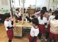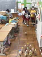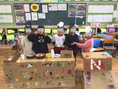 1年生は、生活科の時間にいろいろな秋を見つけて楽しんできました。その活動の中で、子どもたちから他学年を招待したイベントをしたいという声が上がったそうです。少し前に、2年生がおもちゃまつりに招待してくれたので、それも影響してのことでしょうか。みんなで話し合って決めた名前は1組が「あきまつりや」2組は「花いっぱいあきまつり」です。2年生の教室に行って、招待状を渡したり、昼の放送で「放課に遊びに来ませんか」とその他の学年にも呼びかけたり…。2組は、音楽の時間につくった秋のリズムや歌を披露するコンサートも行ったそうで、なかなか盛大なイベントになりました。みんな、とても楽しく活動することができました。